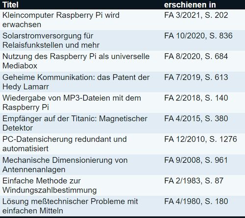 Übersicht Artikel im "Funkamateur"